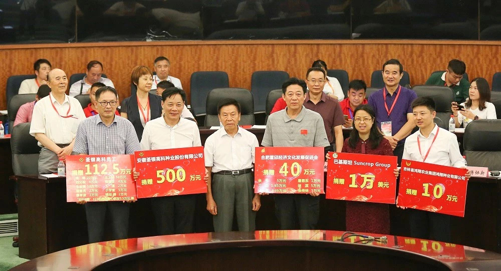 會(huì)上進(jìn)行了基金會(huì)2018年公益愛心捐贈(zèng)儀式。荃銀高科母子公司高管和員工多次參與基金會(huì)濟(jì)困助學(xué)公益慈善活動(dòng),本次捐贈(zèng)112.5萬元;吉林鴻翔種業(yè)集團(tuán)鴻翔種業(yè)有限公司捐贈(zèng)10萬元;巴基斯坦Suncrop Group(陽光作物集團(tuán))捐贈(zèng)1萬美元;合肥霍邱經(jīng)濟(jì)文化發(fā)展促進(jìn)會(huì)及會(huì)員為基金會(huì)貧困助學(xué)項(xiàng)目捐贈(zèng)40萬元;安徽荃銀高科種業(yè)股份有限公司捐贈(zèng)500萬元。