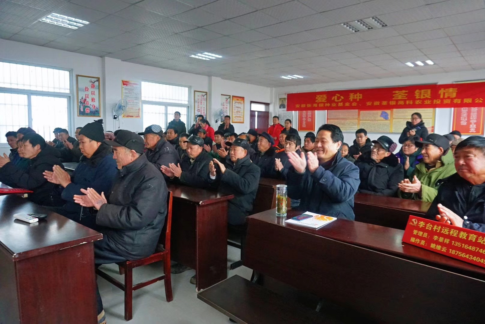??? 戴紹江副鎮(zhèn)長代表鎮(zhèn)黨委對此次活動的愛心捐贈和大力支持表示誠摯的感謝!徐中貴副主任在講話中說,壽縣是國家級貧困縣,全縣貧困人口達到13萬人,衷心感謝荃銀農(nóng)投、基金會和金豐公社三家單位積極承擔社會責任,為貧困戶提供優(yōu)質(zhì)良種、化肥和農(nóng)業(yè)技術服務,希望受助的農(nóng)戶用自己勤勞的雙手和智慧創(chuàng)造幸福生活。