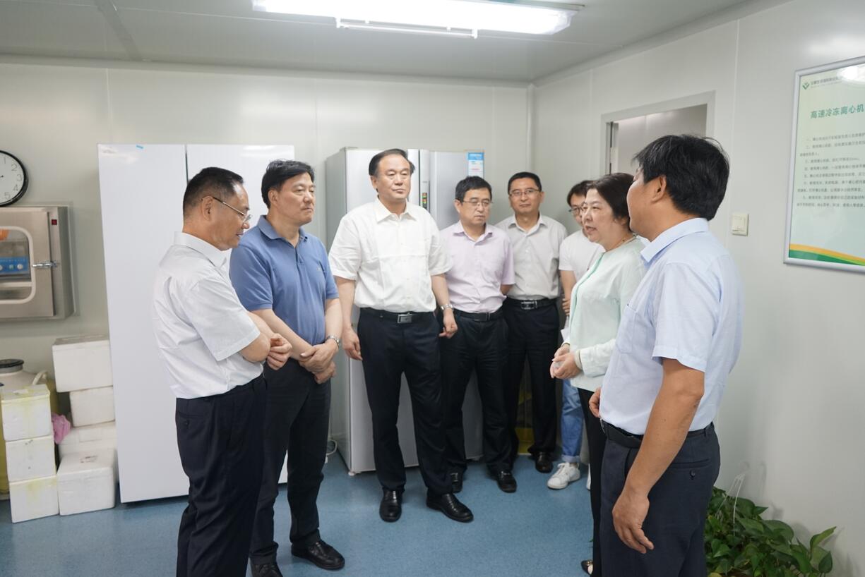 ??? 2019年6月18日上午,上海市政協(xié)常委、市政協(xié)農(nóng)業(yè)和農(nóng)村委員會主任邵林,上海市政協(xié)常委、農(nóng)業(yè)和農(nóng)村委員會常務(wù)副主任、市農(nóng)科院黨委書記、院長蔡有銘,市政協(xié)常委、市商務(wù)委原副主任、市糧食局原局長、黨組書記盞國平,市農(nóng)業(yè)和農(nóng)村委員會副主任王國忠等領(lǐng)導(dǎo)一行蒞臨荃銀高科參觀考察。合肥市政協(xié)主席、黨組書記韓冰,安徽省政協(xié)農(nóng)業(yè)和農(nóng)村委員會專職副主任朱云、辦公室調(diào)研員蘇從江,市政協(xié)常委、市政協(xié)農(nóng)業(yè)和農(nóng)村委員會主任孫功兵等領(lǐng)導(dǎo)陪同考察。荃銀高科副董事長兼總經(jīng)理張琴、副總經(jīng)理兼首席技術(shù)官張從合等熱情接待了考察團一行。