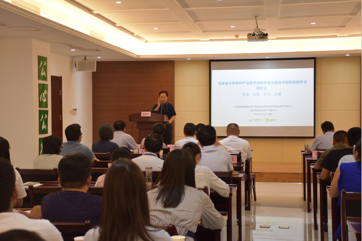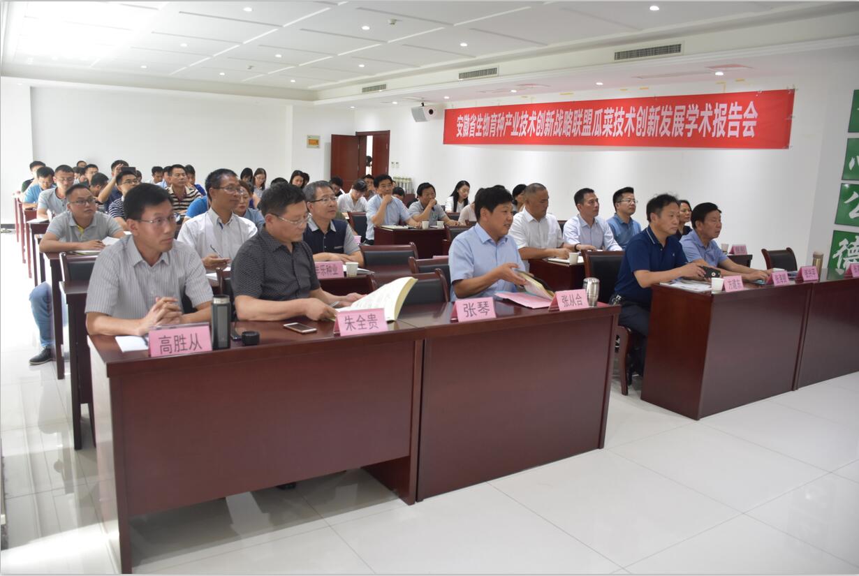 ??? 24日下午,安徽省生物育種產(chǎn)業(yè)技術(shù)創(chuàng)新戰(zhàn)略聯(lián)盟瓜菜技術(shù)創(chuàng)新發(fā)展學(xué)術(shù)報(bào)告會(huì)召開(kāi),合肥市科技局農(nóng)村與社會(huì)發(fā)展科技處處長(zhǎng)方建東,安徽省蔬菜產(chǎn)業(yè)技術(shù)體系首席專家、國(guó)家西甜瓜產(chǎn)業(yè)技術(shù)體系合肥綜合試驗(yàn)站站長(zhǎng)張其安研究員,豐樂(lè)種業(yè)、徽大農(nóng)業(yè)等安徽省生物育種產(chǎn)業(yè)技術(shù)創(chuàng)新戰(zhàn)略聯(lián)盟成員及員工70余人參加了報(bào)告會(huì)。
