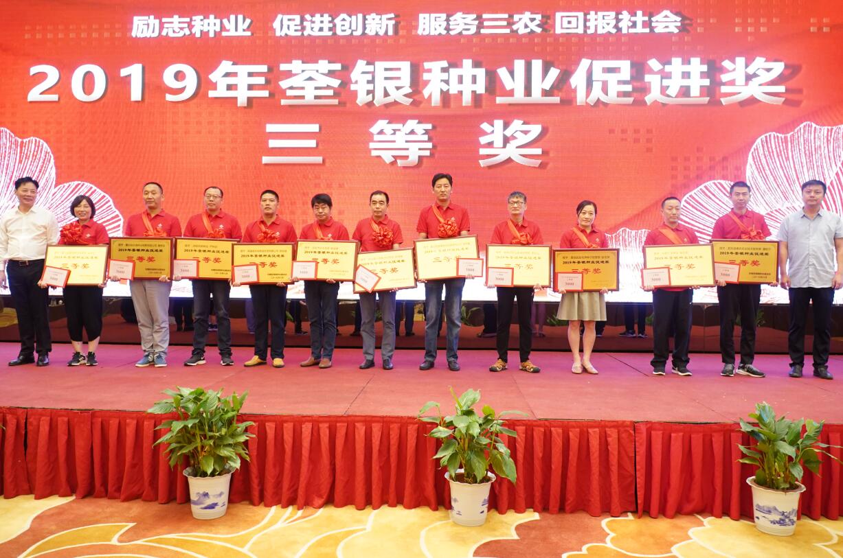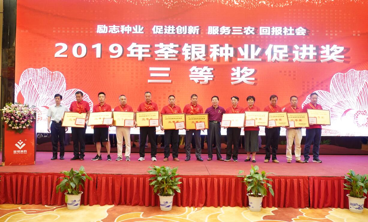 ??? 守初心擔(dān)使命,荃銀人深知企業(yè)的發(fā)展離不開社會的支持。會上,安徽張海銀種業(yè)基金會監(jiān)事鄭滿生先生宣讀“荃銀種業(yè)促進獎”頒獎文件,大會向35名在優(yōu)質(zhì)水稻推廣和良種服務(wù)等方面取得優(yōu)異成績的代表頒發(fā)了“荃銀種業(yè)促進獎”專項獎。