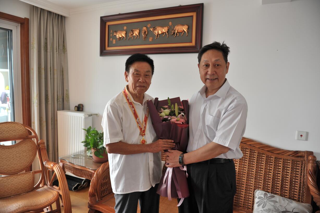 ??? 近日,中共中央、國(guó)務(wù)院、中央軍委聯(lián)合向全國(guó)頒發(fā)“慶祝中華人民共和國(guó)成立70周年”紀(jì)念章活動(dòng),以慶祝中國(guó)人民共和國(guó)成立70周年。9月25日,安徽省科學(xué)技術(shù)獎(jiǎng)勵(lì)工作辦公室劉瑞奇主任一行代表安徽省人民政府,將“慶祝中華人民共和國(guó)成立70周年”紀(jì)念章頒發(fā)給“中國(guó)種業(yè)十大功勛人物”、安徽荃銀高科種業(yè)股份有限公司創(chuàng)始人、安徽張海銀種業(yè)基金會(huì)理事長(zhǎng)張海銀先生,并送上鮮花,轉(zhuǎn)達(dá)了黨和政府的親切慰問與關(guān)懷。