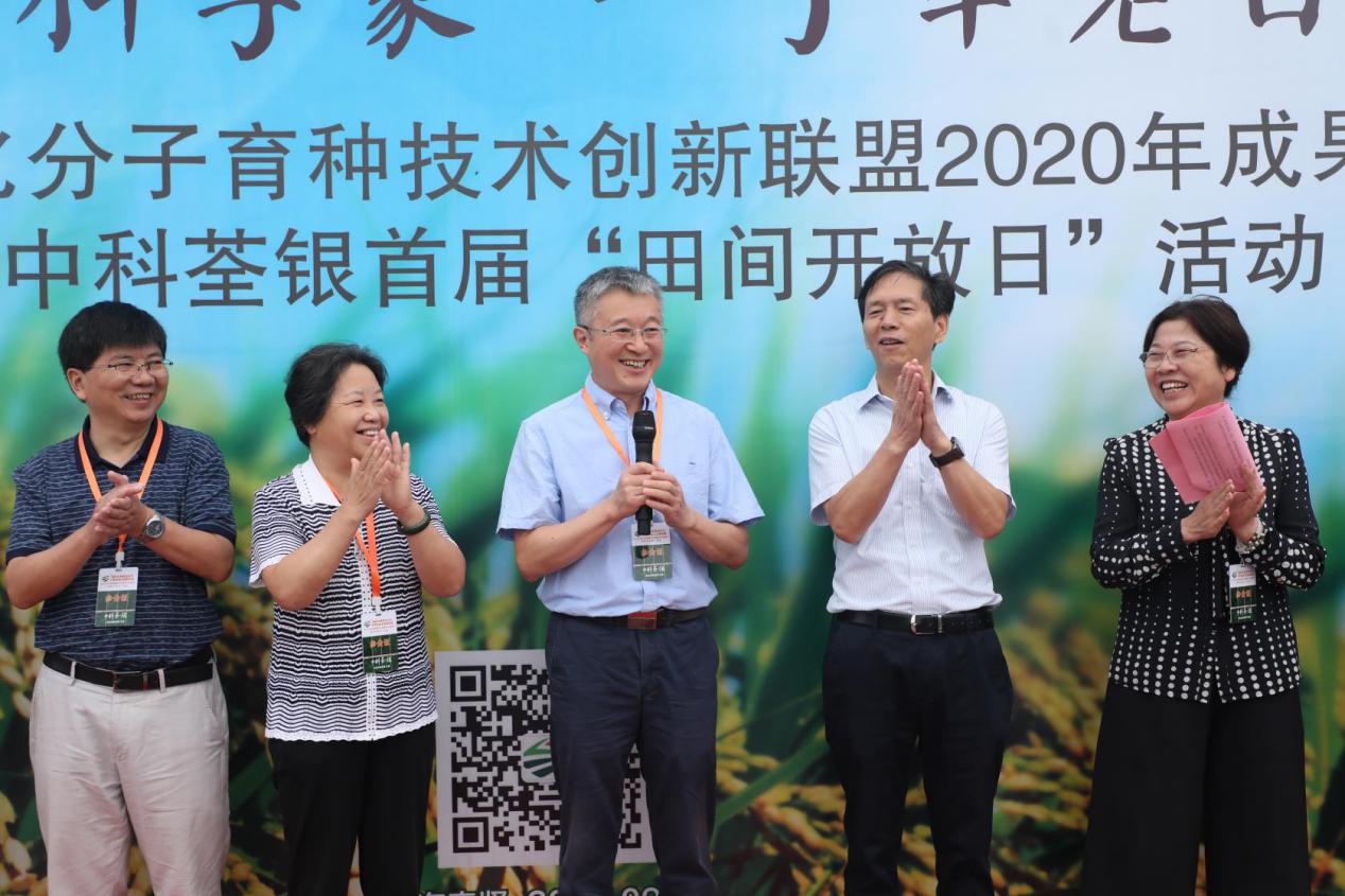 出席本次活動的還有上海市農(nóng)業(yè)農(nóng)村委員會執(zhí)法總隊夏龍平總隊長,上海市農(nóng)業(yè)科技服務中心石達祺主任,上海市農(nóng)業(yè)農(nóng)村委種業(yè)處李建剛副處長,上海市農(nóng)業(yè)農(nóng)村委科技教育處田吉林副處長等領導;中科院遺傳發(fā)育所傅向東研究員、儲成才研究員,中科院合肥物質院研究員吳躍進研究員,安徽省農(nóng)業(yè)科學院副院長李澤福研究員,廣東省農(nóng)科院水稻所所長王豐研究員,中國水稻研究所唐紹清研究員,四川農(nóng)業(yè)大學水稻所馬炳田研究員,中科院分子植物科學卓越創(chuàng)新中心龔頌福主任助理、許璟處長、巫永睿研究員、王子軒研究員等專家;荃銀高科常務副總經(jīng)理王玉林,副總經(jīng)理、荃銀農(nóng)科院院長張從合,監(jiān)事會主席謝慶軍,工會主席兼辦公室主任鄭滿生;上海中科荃銀總經(jīng)理方玉等荃銀高科(分)子公司領導,以及人民日報、新華社、經(jīng)濟日報、農(nóng)民日報、解放日報、東方城鄉(xiāng)報等媒體朋友。